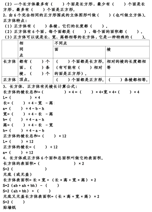 5、圆柱的表面积:圆柱的表面积=侧面积+2个底面面积。