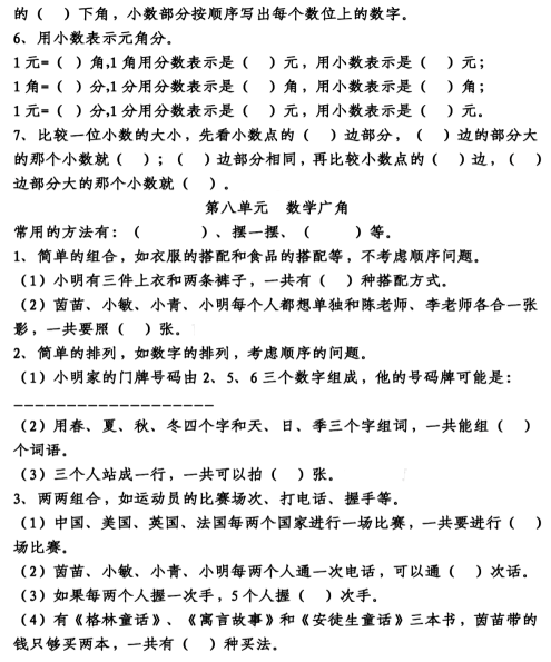 (3)求一个数比另一个数少多少,用另一个数减去这个数。