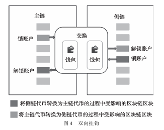 主链和侧链采用双向挂钩机构连接。双向挂钩允许使用权属代币从区块链主链转移到侧区块链。使用权属代币实际上并没有被转移,而是被暂时锁定,而相同数量的相等使用权属代币在侧区块链上解锁。当相同数量的使用权属代币再次锁定在侧区块链上时,原始代币将被解锁。这基本上是双向挂钩想要实现的功能。