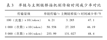 实验结果(如表3所示)显示,主侧链桥接机制相对于单链传输,能够减少了大约48%的交易时间。其中不到50%的性能损耗主要由双向挂钩同步机制和主侧链记录的交易类型和功能的一些差异而导致。这表明主侧链桥接机制在处理小额交易时具有明显的性能优势,同时具有较高的可解释性和安全性,为区块链生态系统中的小额交易提供了更高效的解决方案,对于改善区块链网络的可扩展性和效率具有重要的指导意义。