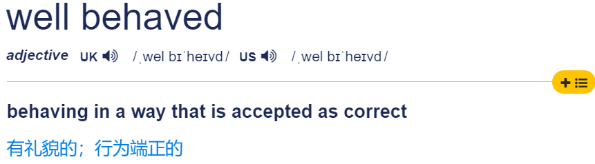 在这里意思是:(儿童)乖的,守规矩的,不调皮的