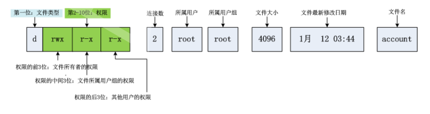 我们可以看到每个文件的信息都是由相似的一排组成,那么这些信息分别表示什么意思呢?