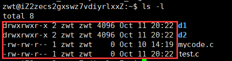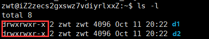 当我们查看它们两个权限时,我们可以看到目录文件的权限为775(八进制数组表示),普通文件的权限为664