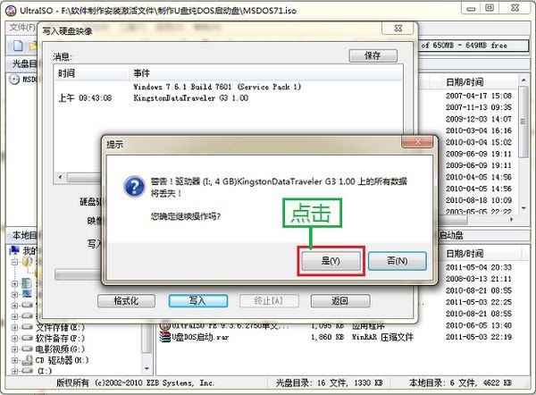 在弹出来的警示提醒点“是”逐渐写入,一会儿后显示信息刻录光盘取得成功,点“回到”,关掉软件。