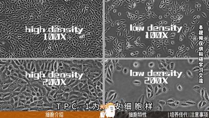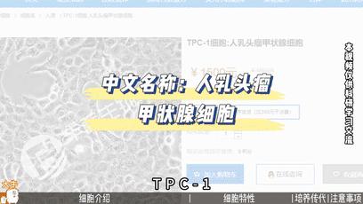 TPC-1,人乳头瘤甲状腺细胞,是金泽大学癌症研究所从一名女性患者的乳头状甲状腺肿瘤组织中分离出来的。甲状腺癌是最常见的内分泌系统恶性肿瘤,而乳头状甲状腺癌是最常见的分化型甲状腺癌,恶性程度相对较低、发展相对缓慢、手术预后相对较好,但易发生淋巴结转移。