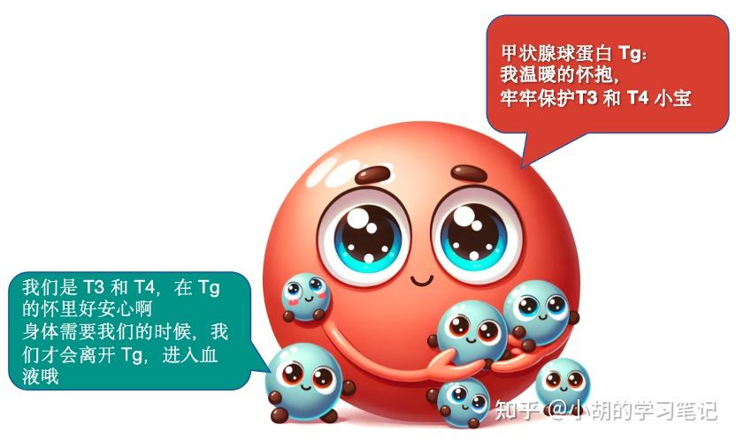 那么甲状腺球蛋白的作用是什么?如果说甲状腺滤泡是生成甲状腺激素的工厂,那么位于滤泡腔内的TG则是起到了运输及存储甲状腺激素的作用,也就是说食物中的碘及氨基酸在这儿生成甲状腺激素(即T3和T4),在需要时通过甲状腺球蛋白转运出滤泡,进入血液发挥作用。