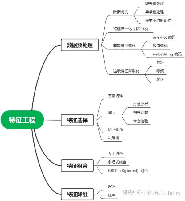 数据预处理是特征工程的最重要的起始步骤,主要包括数据清洗、特征归一化、离散特征编码、连续特征离散化等。