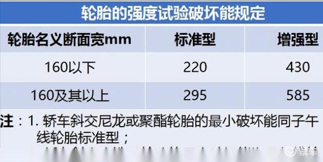 试验室温度应保持在18℃~36℃;其他试验条件、试验方法按照GB/T4053-1996中相应规定执行,试验后轮胎的强度试验破坏能应不低于下表中规定。