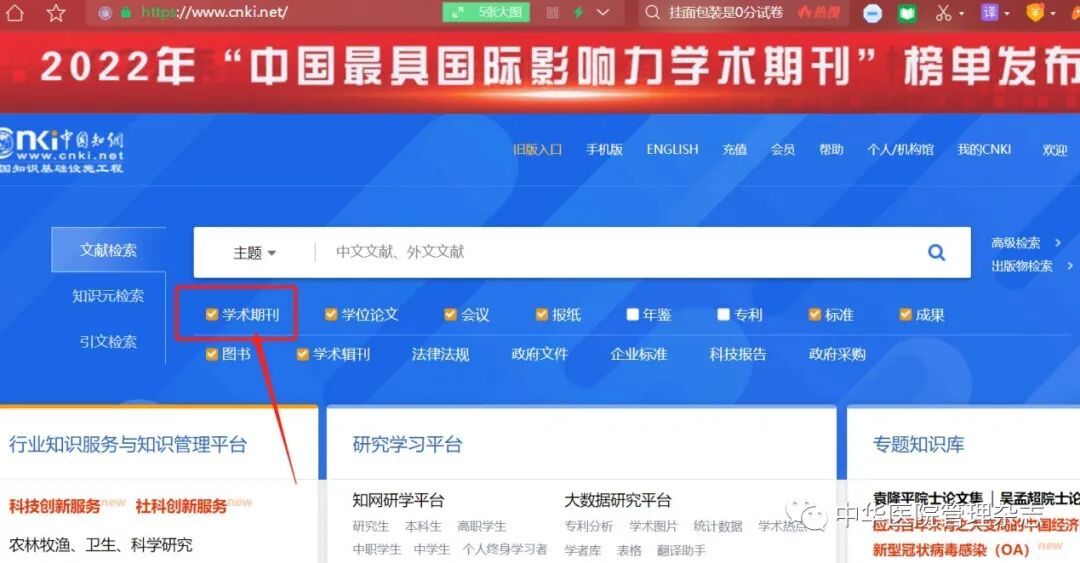 近期,中国知网的检索设置有所调整,对于非全文收录的期刊文章,只能通过学术期刊库的高级检索界面进行展示,为便于中华医学会系列杂志文章作者的检索需求,我们特将调整后的检索策略做如下说明。