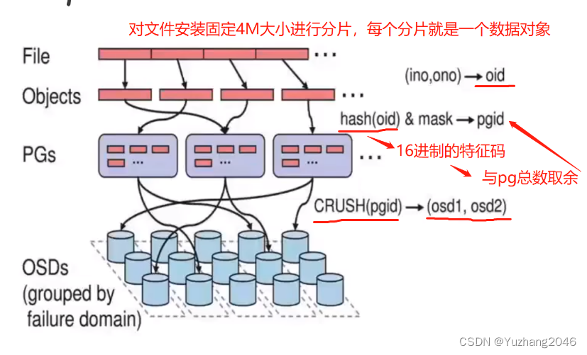 2)在 Ceph 中,一切皆对象。Ceph 存储的数据都会被切分成为一到多个固定大小的对象(Object)。Object size 大小可以由管理员调整,通常为 2M 或 4M。