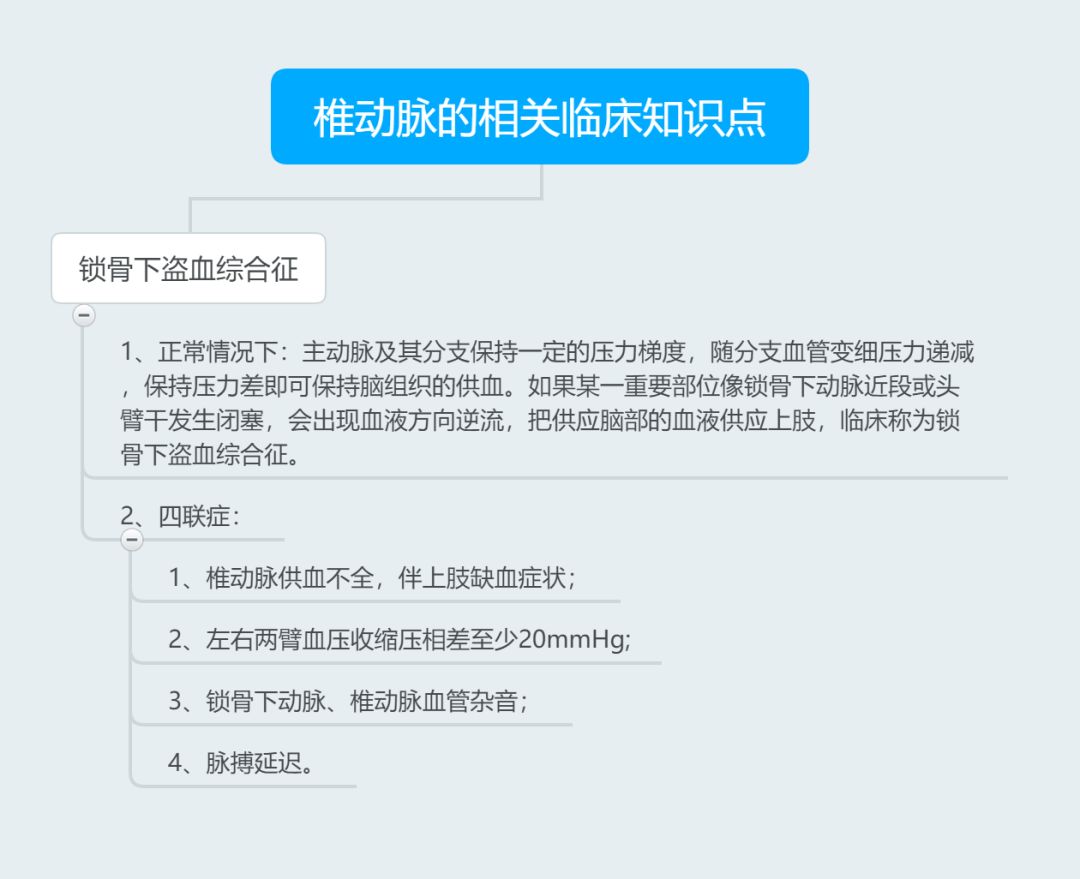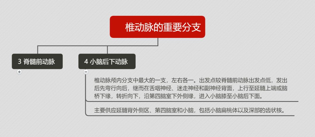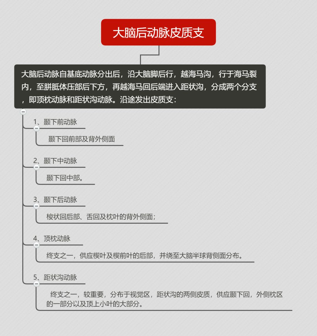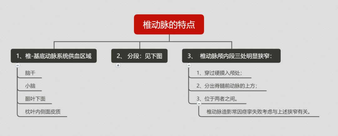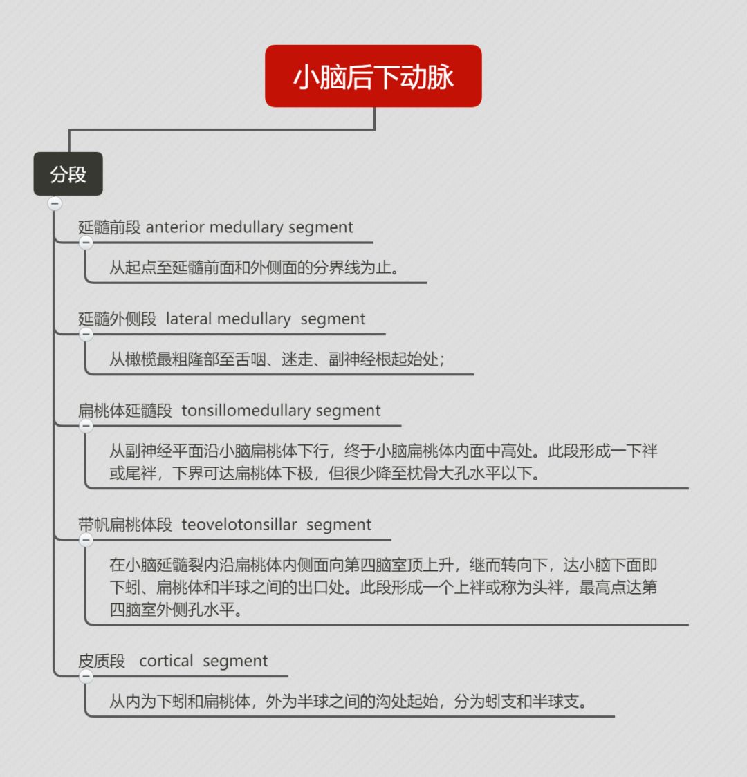 分层图(头的解剖结构分层图)简洁而实用 1 椎 基底动脉系统的构成 2 椎动脉的特点 供血区域 分段 颅内三处狭窄 3 椎动脉的相关临床知识点 4 椎动脉的分支 5 小脑后下动脉的分段 分支及相关临床知识点 6 基底动脉的供血范围 分支 7 基底动脉脑桥支的分支 及相关临床知识点 8 基底动脉的分支 9 大脑后动脉分段 10 大脑后动脉分支 中央支 脑室及脉络丛支 皮质支 11 后颅窝动脉及椎动脉 附图 备注