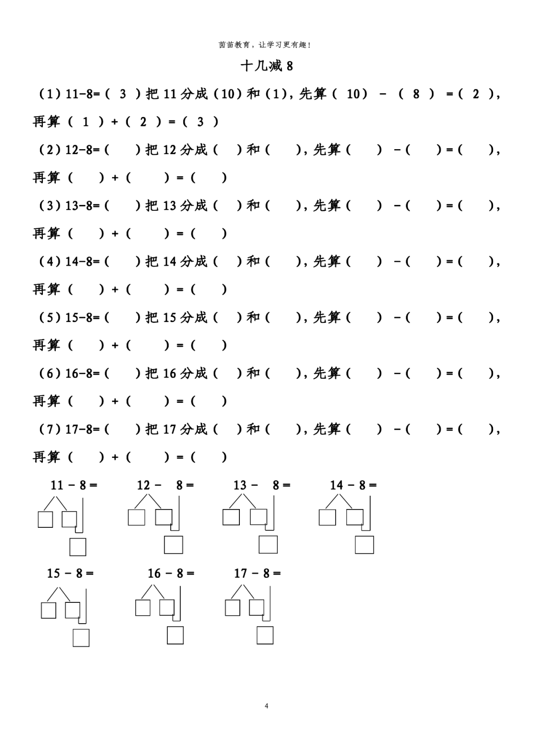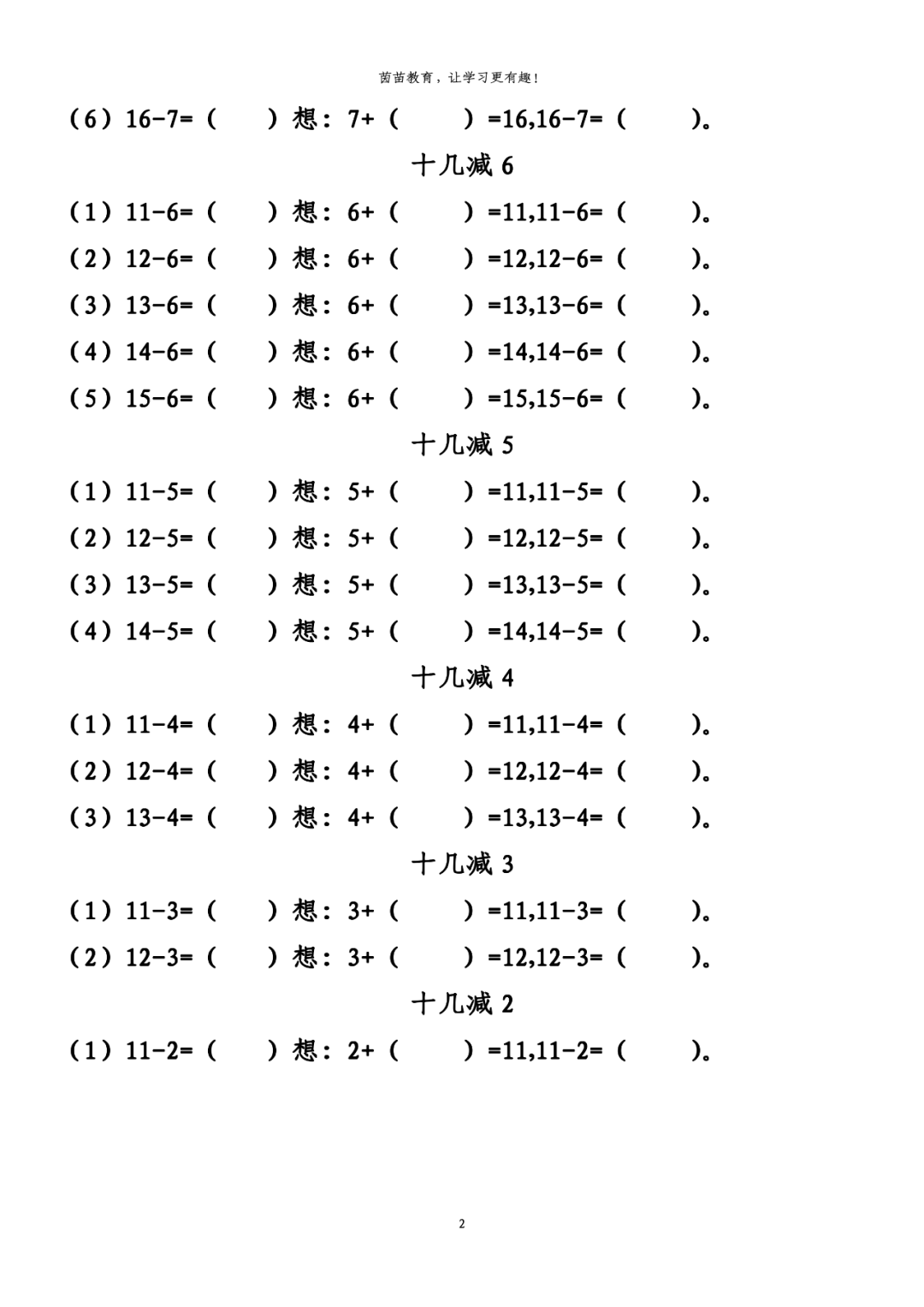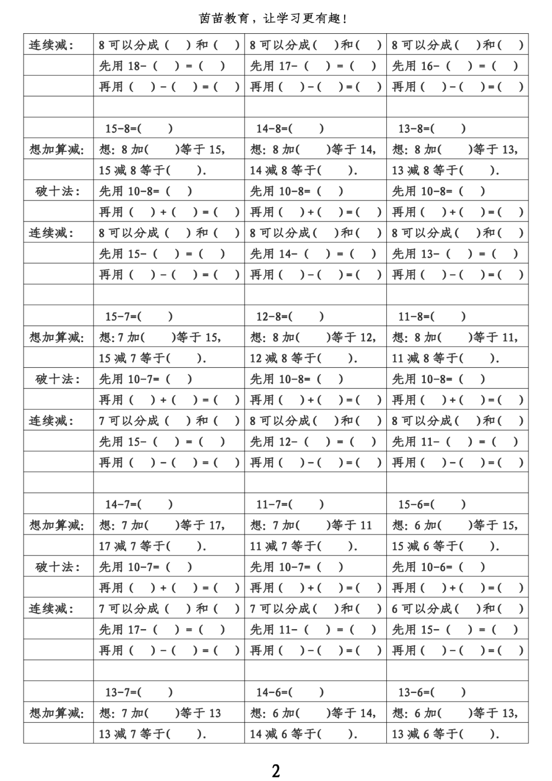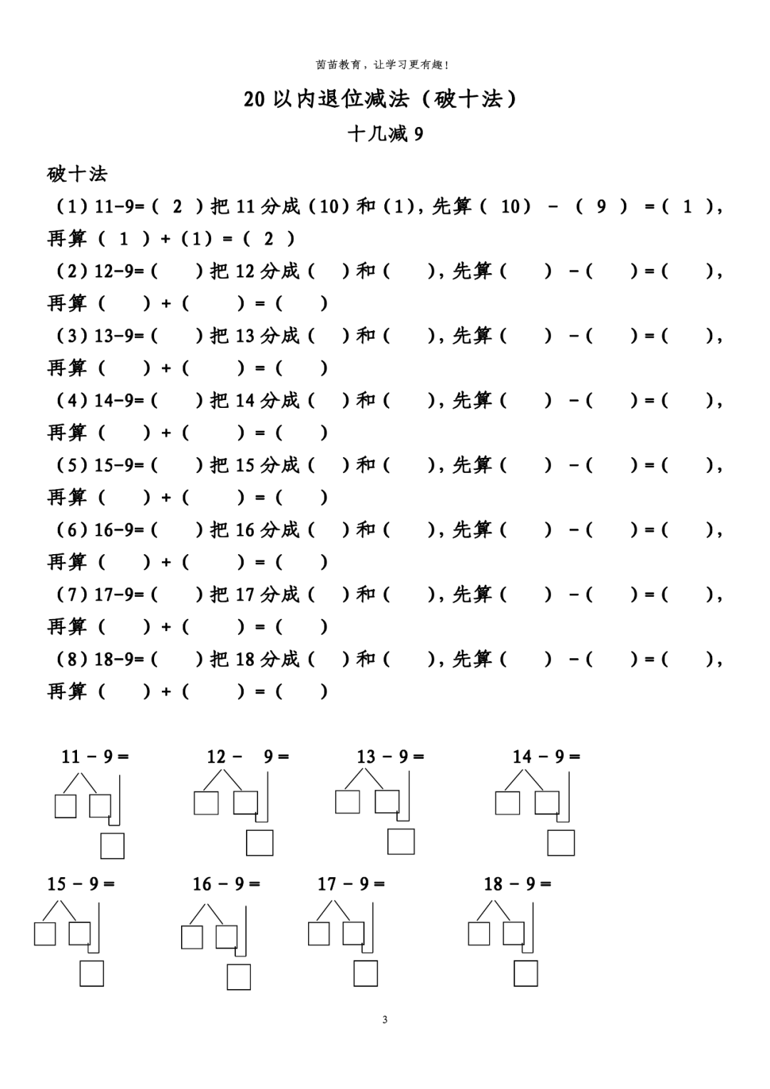 计算20以内的退位减法有三种方法:想加算减、破十法、连续减法(平十法)