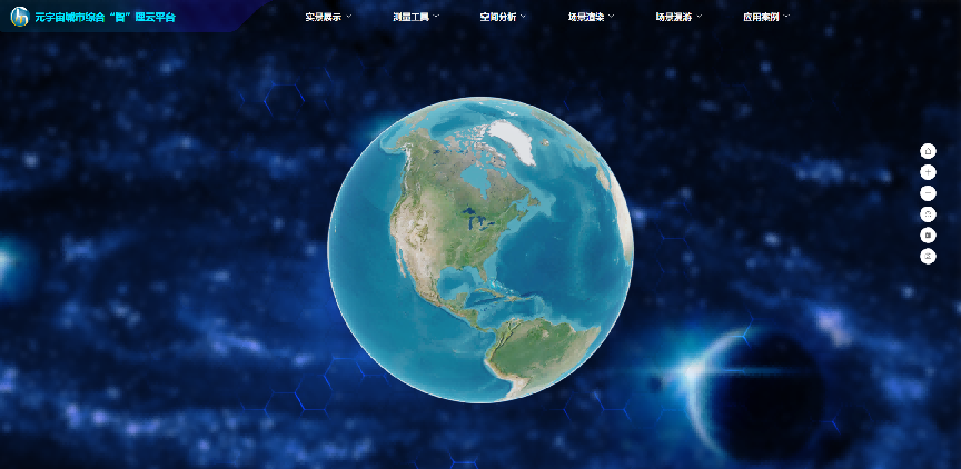 实景展示主要是进行图层管理,负责二三维数据的加载显示;测量工具负责平台内空间距离量算,包括距离测量、面积测量、高差测量;空间分析模块主要包括通视分析、日照分析、淹没分析、视域分析和地形开挖等功能;场景渲染模块主要是模拟雨天、雪天、大雾、夜间等效果;场景漫游模块主要是路径漫游和实景漫游。系统总体页面功能页面展示如下图: