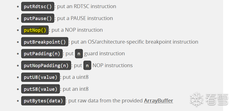 try块内,我们可以插入要修改/添加的x86指令。X86Writer实例提供了各种方法来插入各种x86指令。我们可以查阅文档以了解详情。