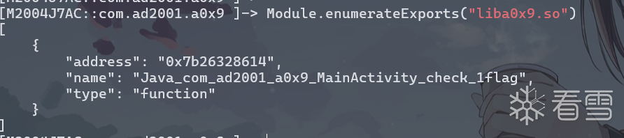 var check_flag = Module.enumerateExports(“liba0x9.so”)[0][“address”];