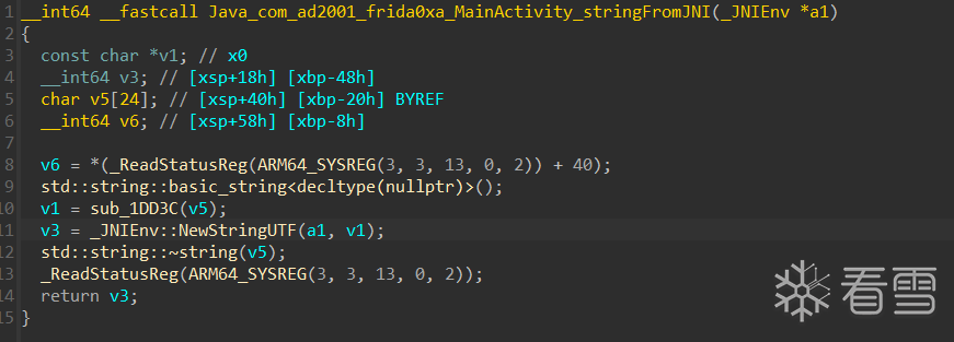 对象,它表示我们想要调用的实际本地函数。它在本地函数周围创建一个 JavaScript 包装器,允许我们从 Frida 调用该本地函数。