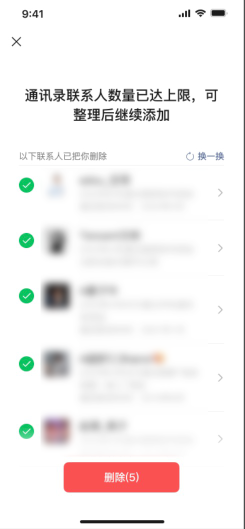 不过,微信确实上线了上述功能,但有限制条件。具体来看,微信用户达到1万好友上限后,添加新的好友时,才会出现一个弹窗展示单删好友,届时用户可选择删除这些单删好友后继续添加好友。