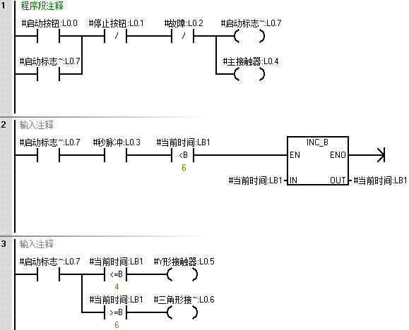 (IN-OUT)输入输出:如若上述两点都需要多次调用与使用线圈或线圈它的常开常闭点,就需要使用输入输出变量。
