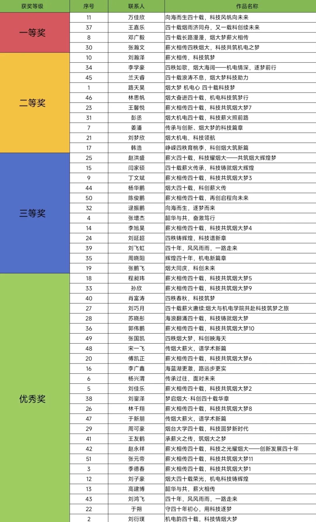 至此,机电学院第十届办公软件大赛圆满结束。参赛选手用精彩的ppt回顾介绍了烟大四十年辉煌发展,以生动的演讲诠释了青春的活力与风采。本次比赛让我们见证了机电学子们的才华与激情,也让我们坚信,未来的烟大,定将在他们的努力下绽放出更加璀璨的光芒。