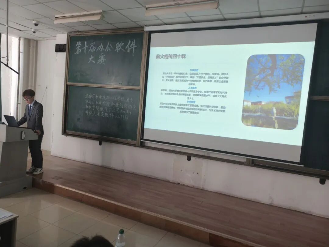 Office办公软件的使用与日常生活密切相关,其中ppt的应用在日常汇报展示或比赛答辩中均起到重要作用,为了让同学们快速掌握PPT的运用,快速掌握ppt软件应用,练习答辩技巧,近日,机电学院举办了第十届办公软件创意设计竞赛。