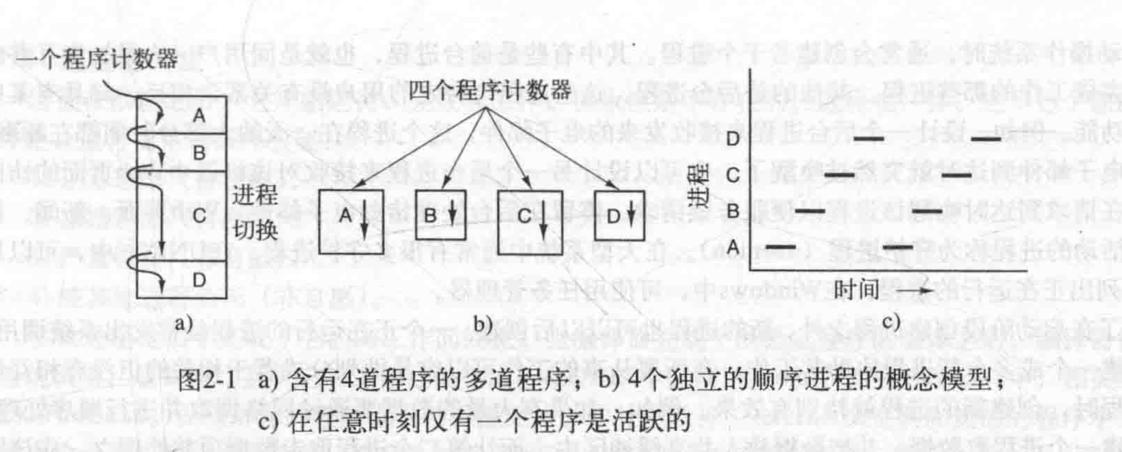- 在当代计算机中,所有进程均被组成若干顺序进程,包括操作系统自己的进程服务.