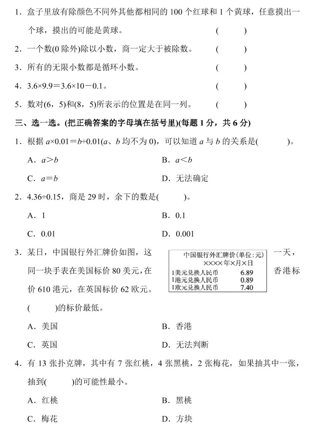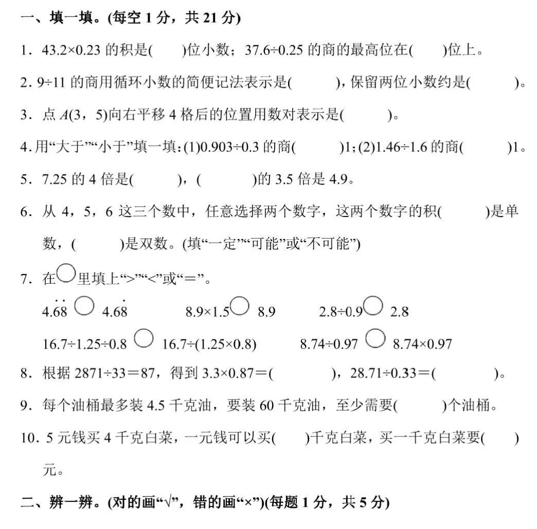 最近,后台不少家长学生询问学习资料,今天王老师准备了2024学年五年级上册数学《期中测试卷》5套带答案,孩子学习必备哦!
