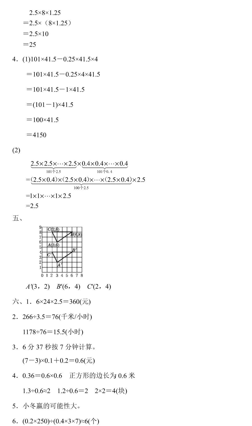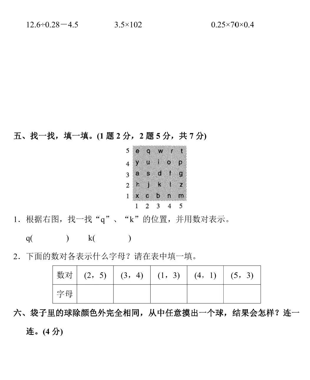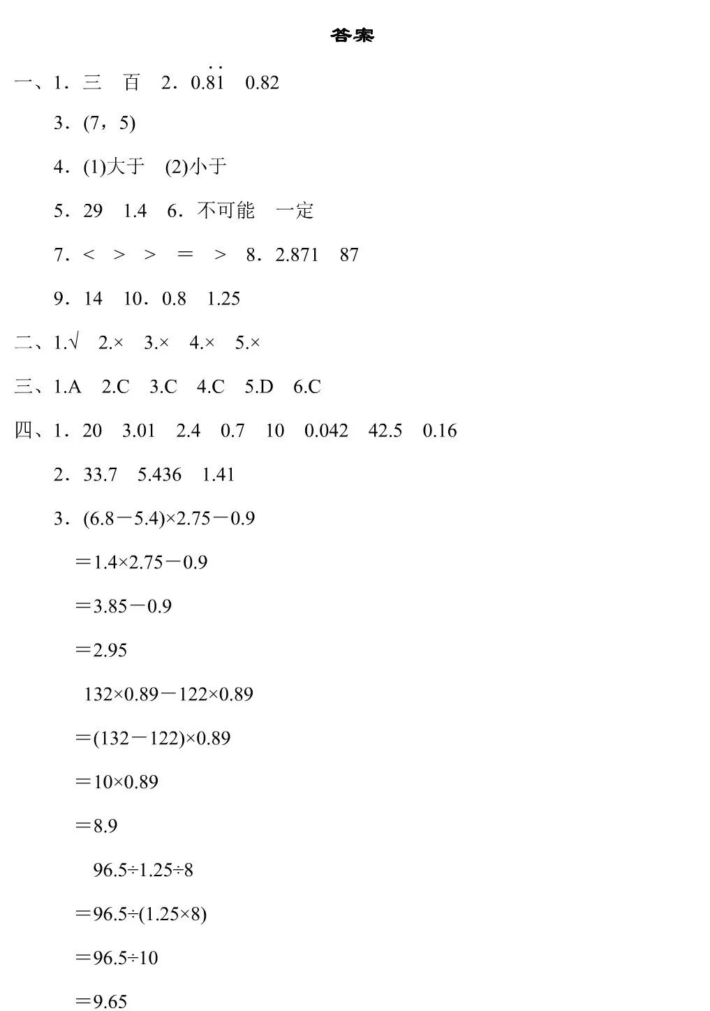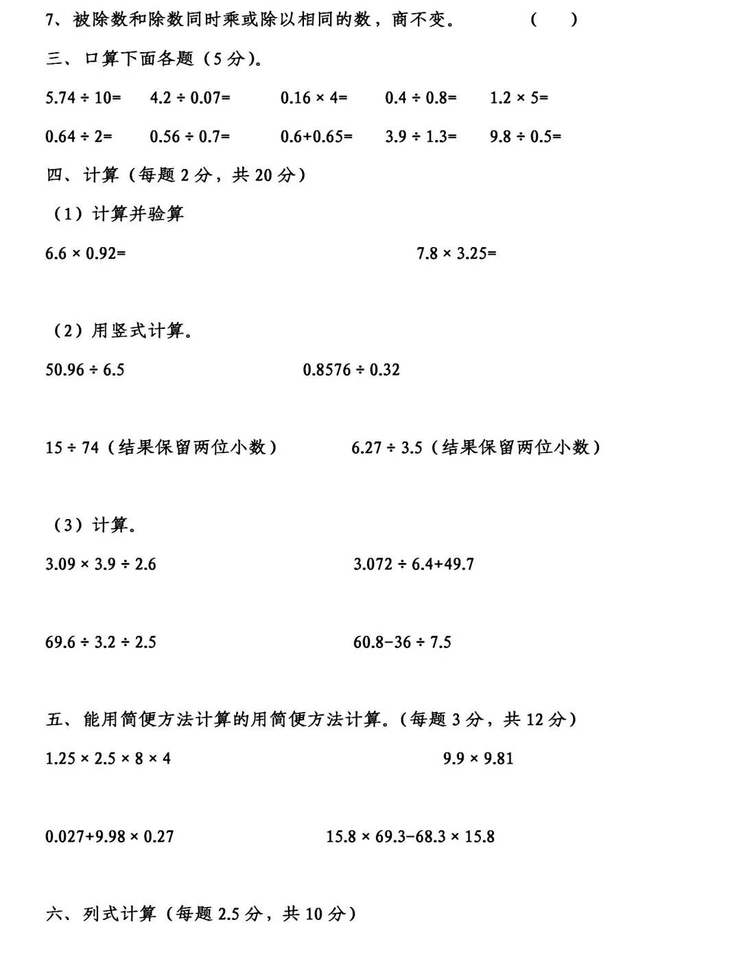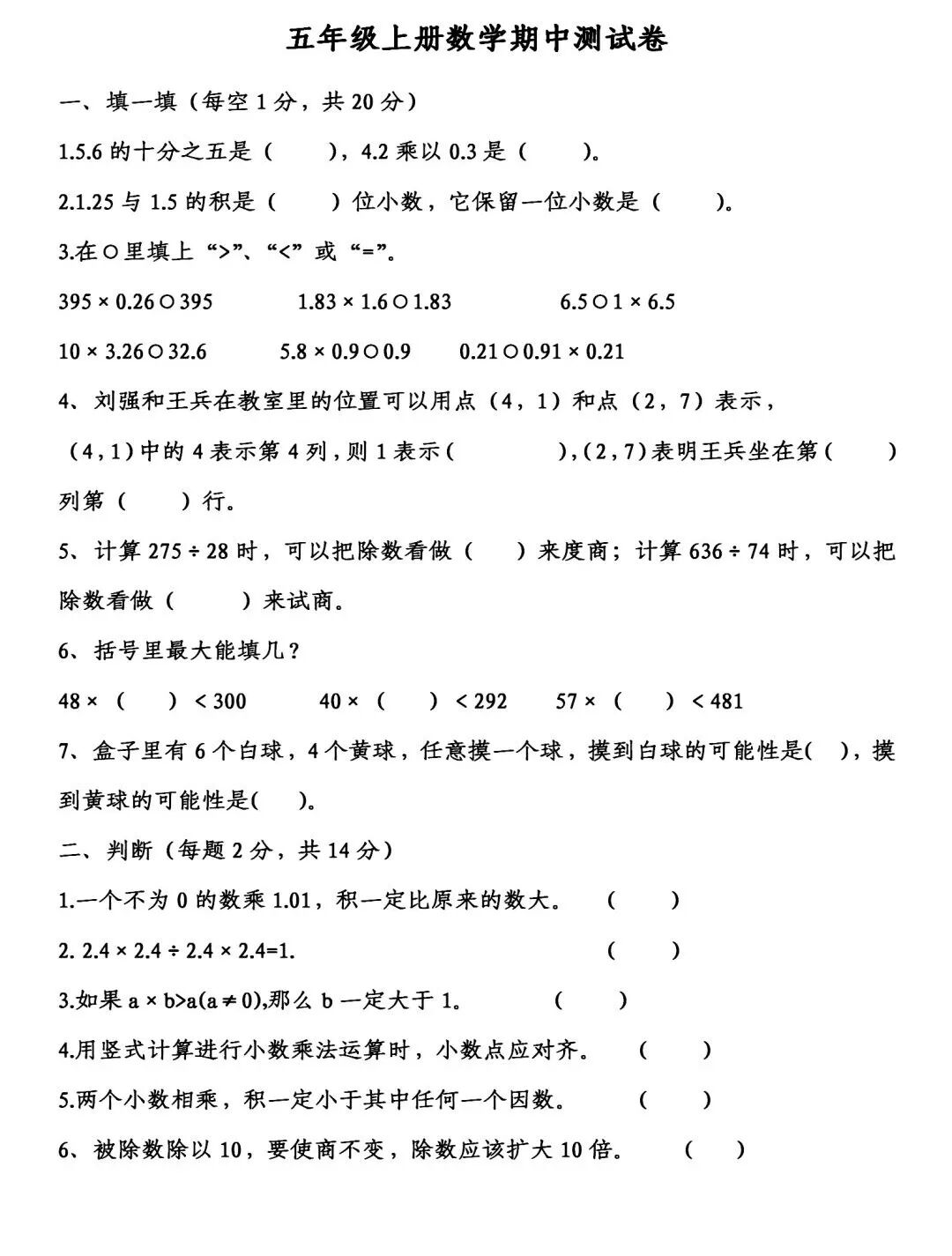 五年级上册数学《期中测试卷》5