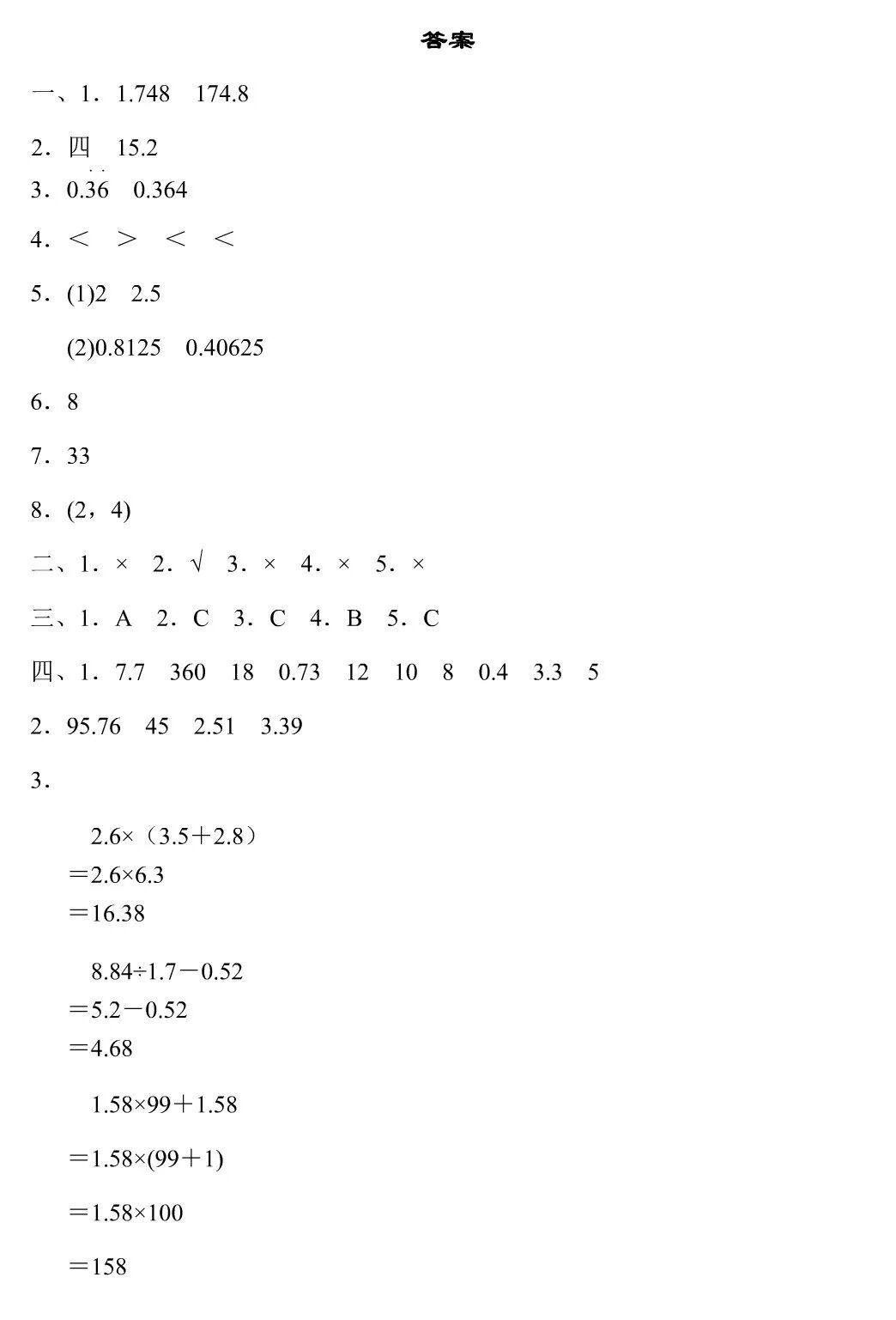 2. 2.4×2.4÷2.4×2.4=1. ( × )