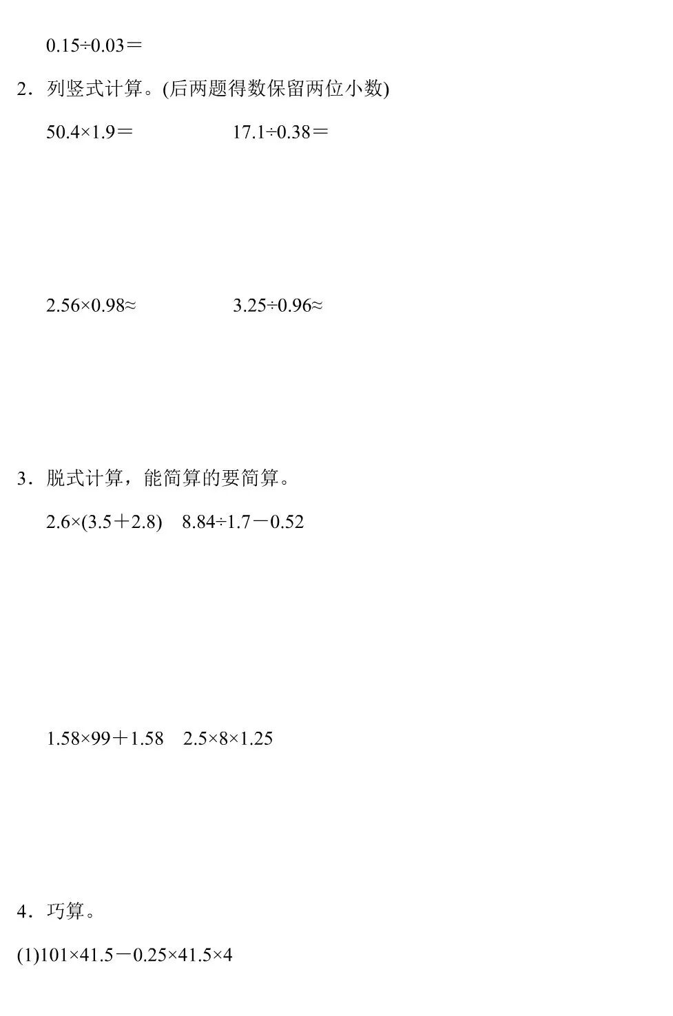 六、列式计算(每题2.5分,共10分)
