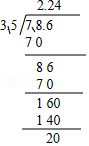 7.86÷3.5≈(得数精确到十分位)