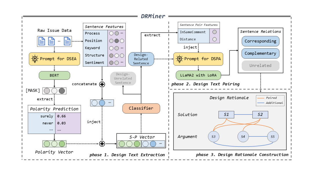 开源软件由大量松散组织的开发者志愿贡献。各开源社区,如GitHub等,大多以源代码为核心,缺少设计架构相关知识的记录,导致代码变更慢、架构侵蚀等问题。此项工作推出了方法DRMiner,实现从开源社区Jira的问题日志(Issue Logs)中自动挖掘并构建设计原理。所谓设计原理,是指针对某具体问题(issue)的解决方案以及优缺点分析。DRMiner以先进的语言模型作为基本框架,保证方法对问题日志及相关讨论的理解程度;设计并融入针对性的启发式规则,提高对设计原理语句挖掘的准确性。通过在三个大型开源项目上实验,验证了DRMiner挖掘设计原理的有效性。