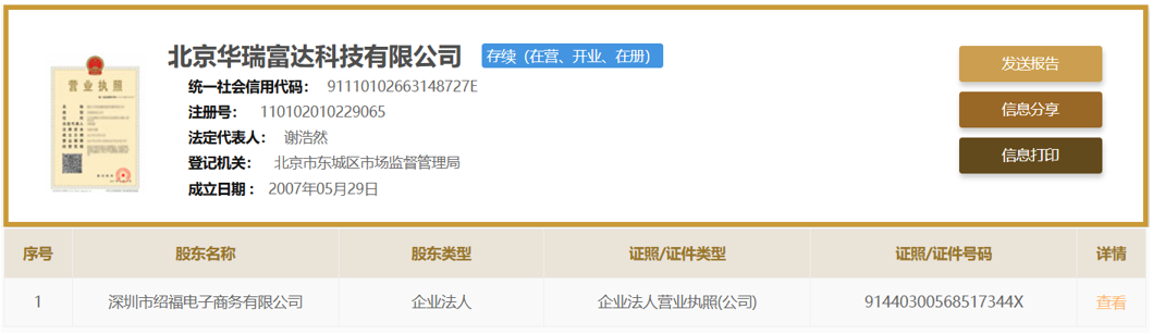 华瑞富达的原股东深圳市绍福电子商务有限公司为周大福旗下公司,而新的控股股东成都遂意则在今年1月进行市场主体类型变更、投资人(股权)变更等一系列操作,而后又分别在3月、4月进行两次增资,注册资本分别增加7500万元和3000万元。
