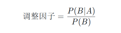 了解意思之后,我们开始算一下P(B|A)=15⁄20=75%,P(B)即白球总概率,它等于一号盒中取出白球和二号盒中取出白球两个事件的概率之和,即 75% *50% + 50% * 50%= 62.5% (注:取球前先得取盒子,盒子二取一所以是50%),所以最后调整因子等于75%/62.5%,即1.2。