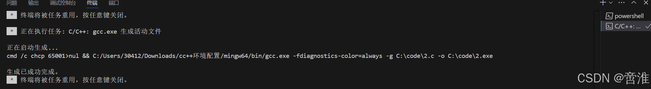 然后选择上侧的“终端”选择“运行生成任务”再选择弹窗第一个即可