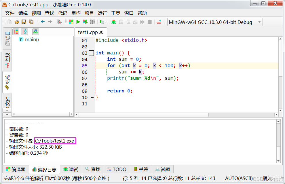 一款 Windows 平台下的轻量级 C/C++ IDE,免费开源,适合初学者,默认使用 MinGW/GCC 编译器