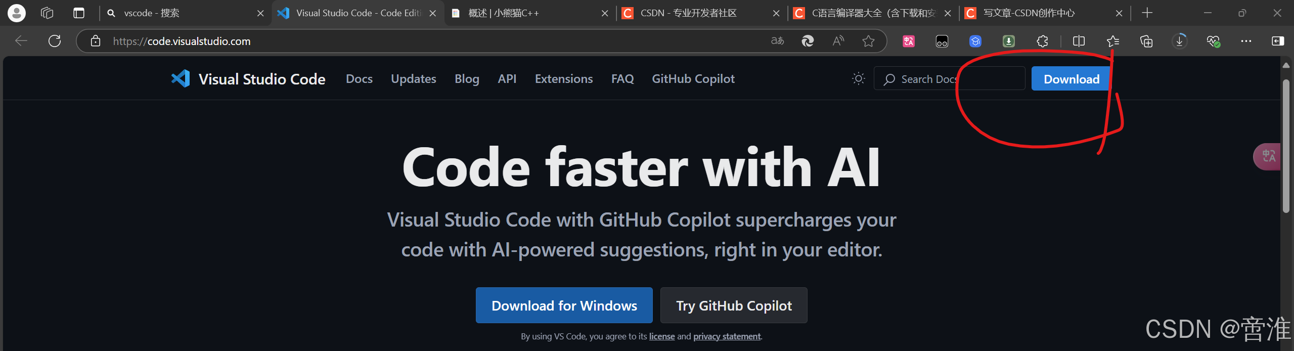 因为作者目前用VScode,于是就只告诉你们怎么安装和配置vscode啦,如果有其他的想法可以移步到另一个大佬的文章C语言编译器大全(含下载和安装教程)-CSDN博客