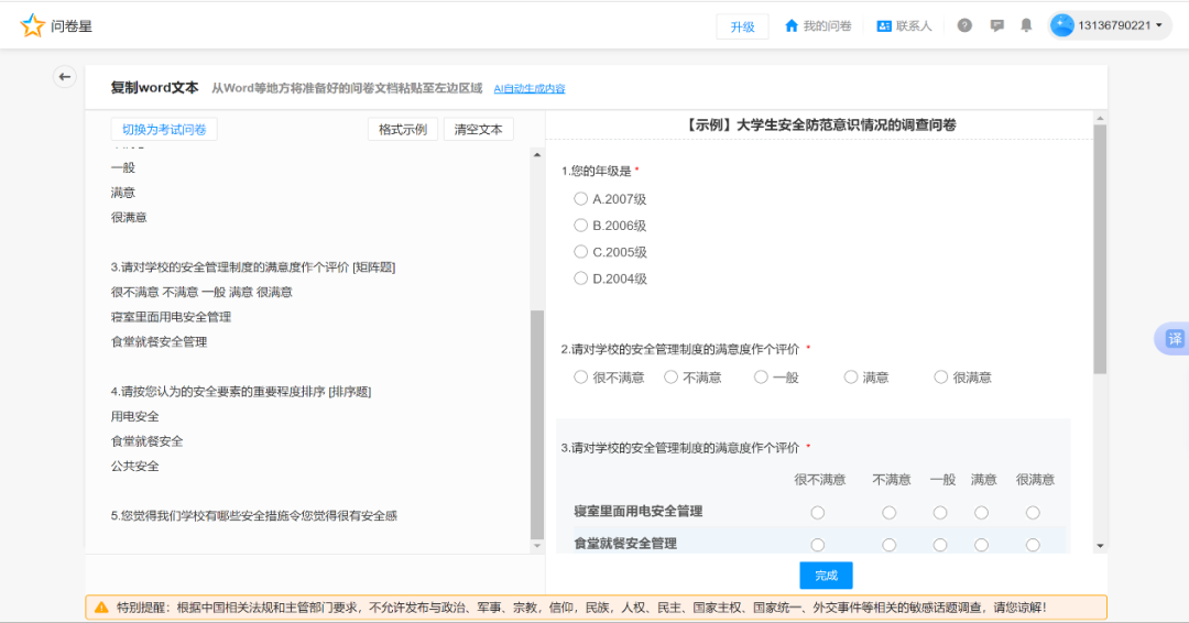 具体操作举例:使用[聪明灵犀]编写好调查内容+使用[问卷星]进行生成和分析。