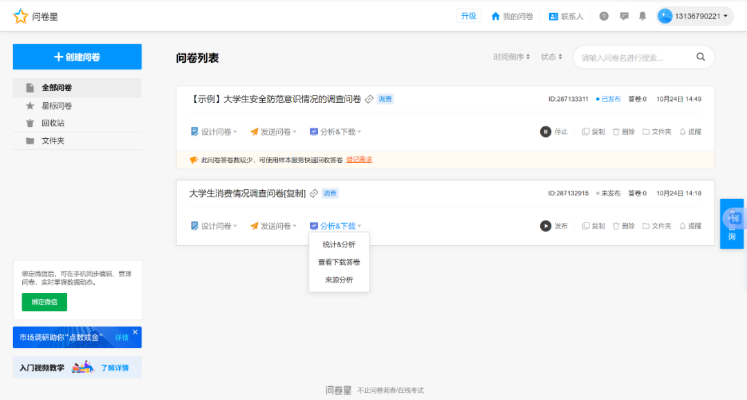 - 将生成的问卷内容上传到问卷星,进行生成与发布,获取相关数据