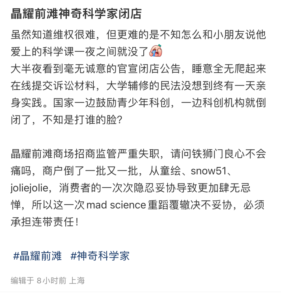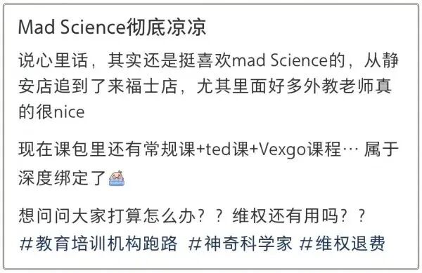 针对“Mad Science”闭店的吐槽帖