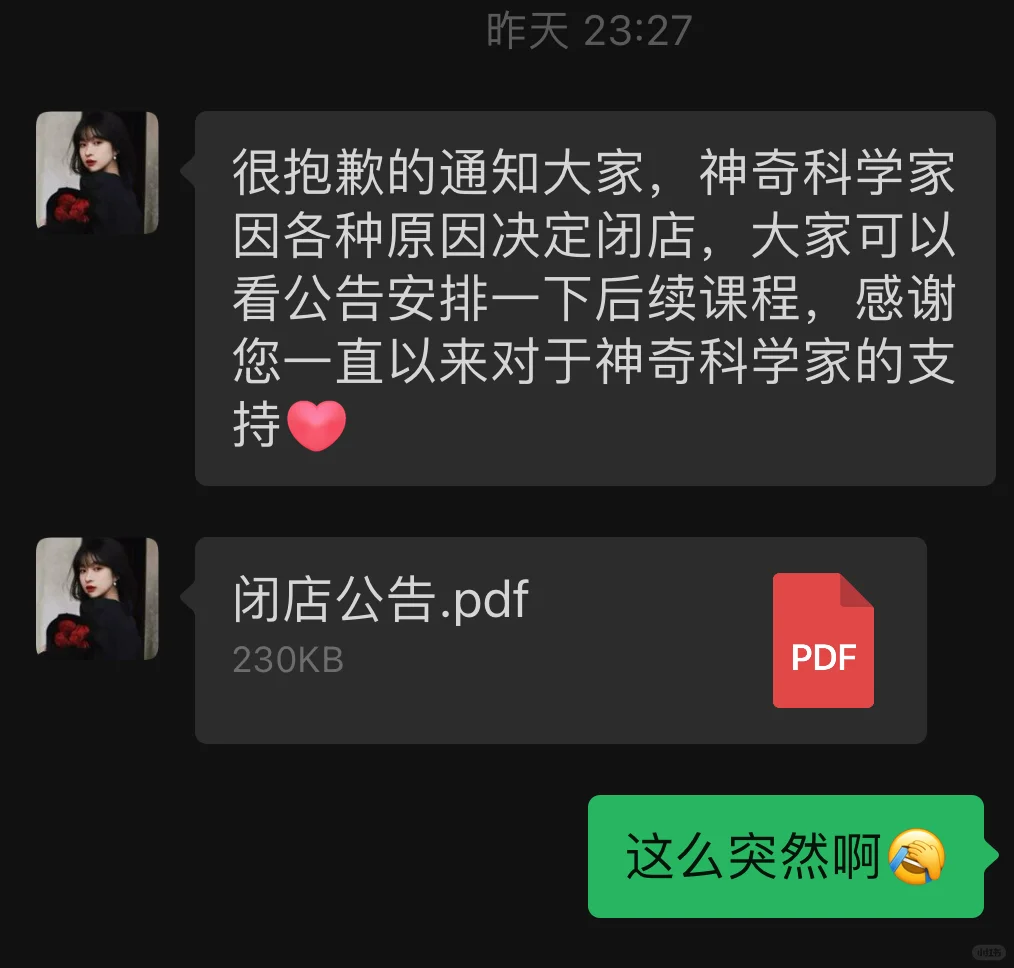 收到了闭店公告