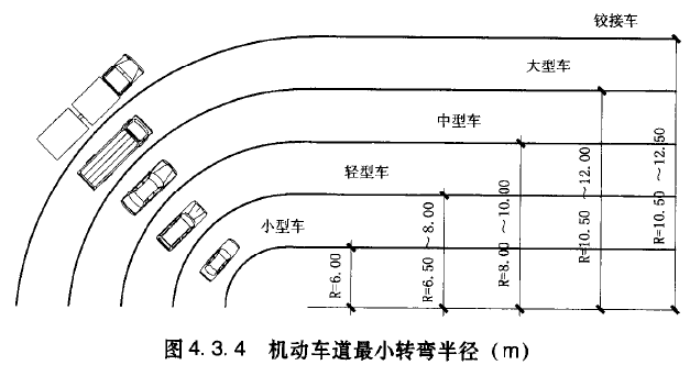 d.转弯半径:小型车6m、中型车10m、客车12m。