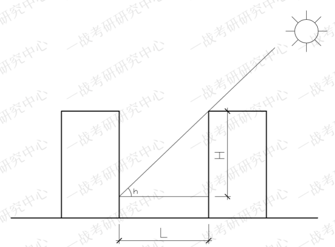 7、日照间距:是指前后两排南向房屋之间,为保证后排房屋在冬至日(或大寒日)底层获得不低于二小时的满窗日照而保持的最小间距距离日照间距(L)的计算:前幢房屋檐口至一层窗台边缘高度(H)。
