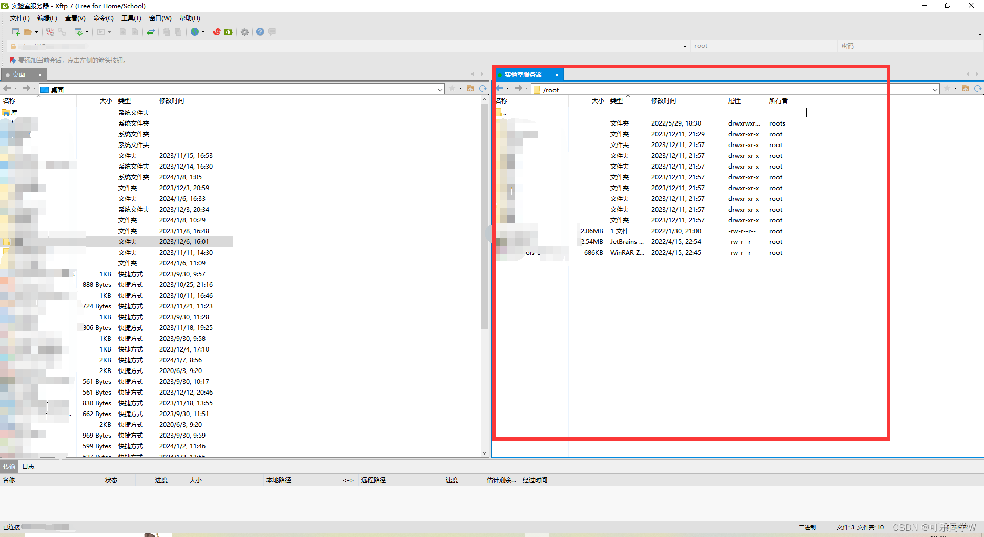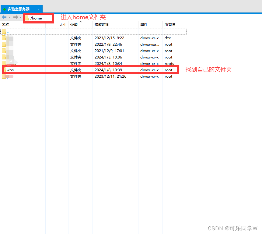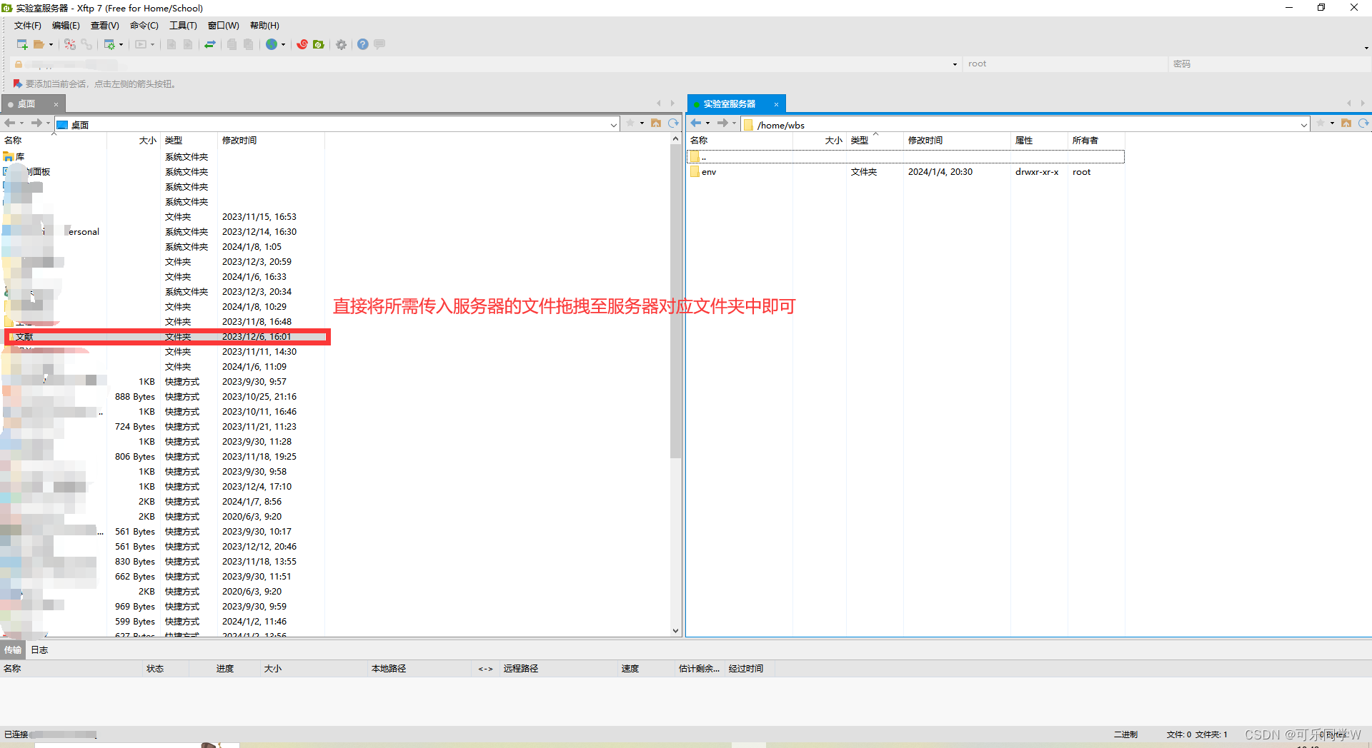 step2:进入自己的文件夹,进行文件传输(刚进入服务器时,默认进入root文件夹,可以修改进入home文件夹,然后进入自己创建的文件夹中进行操作,注意不要操作他人创建的文件夹!!!)