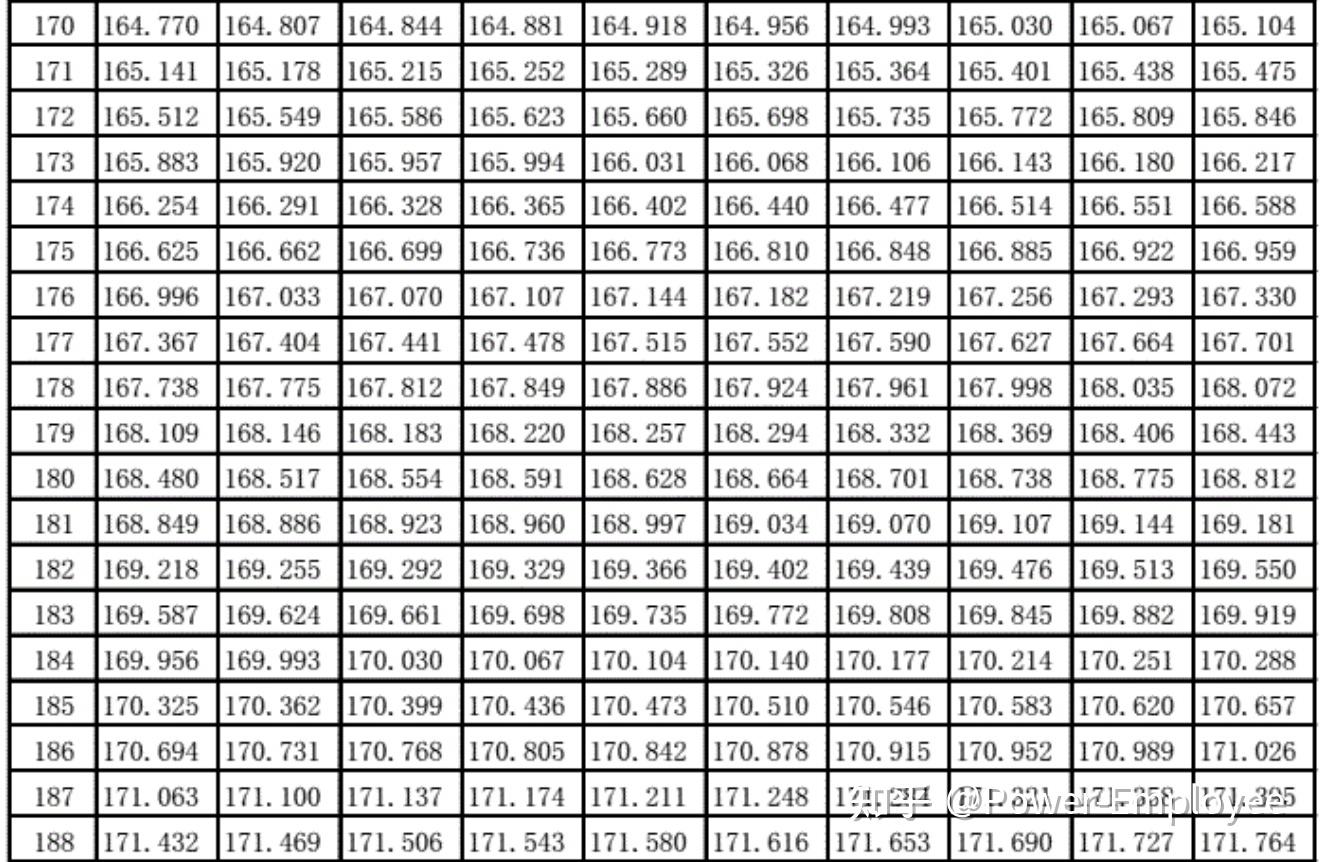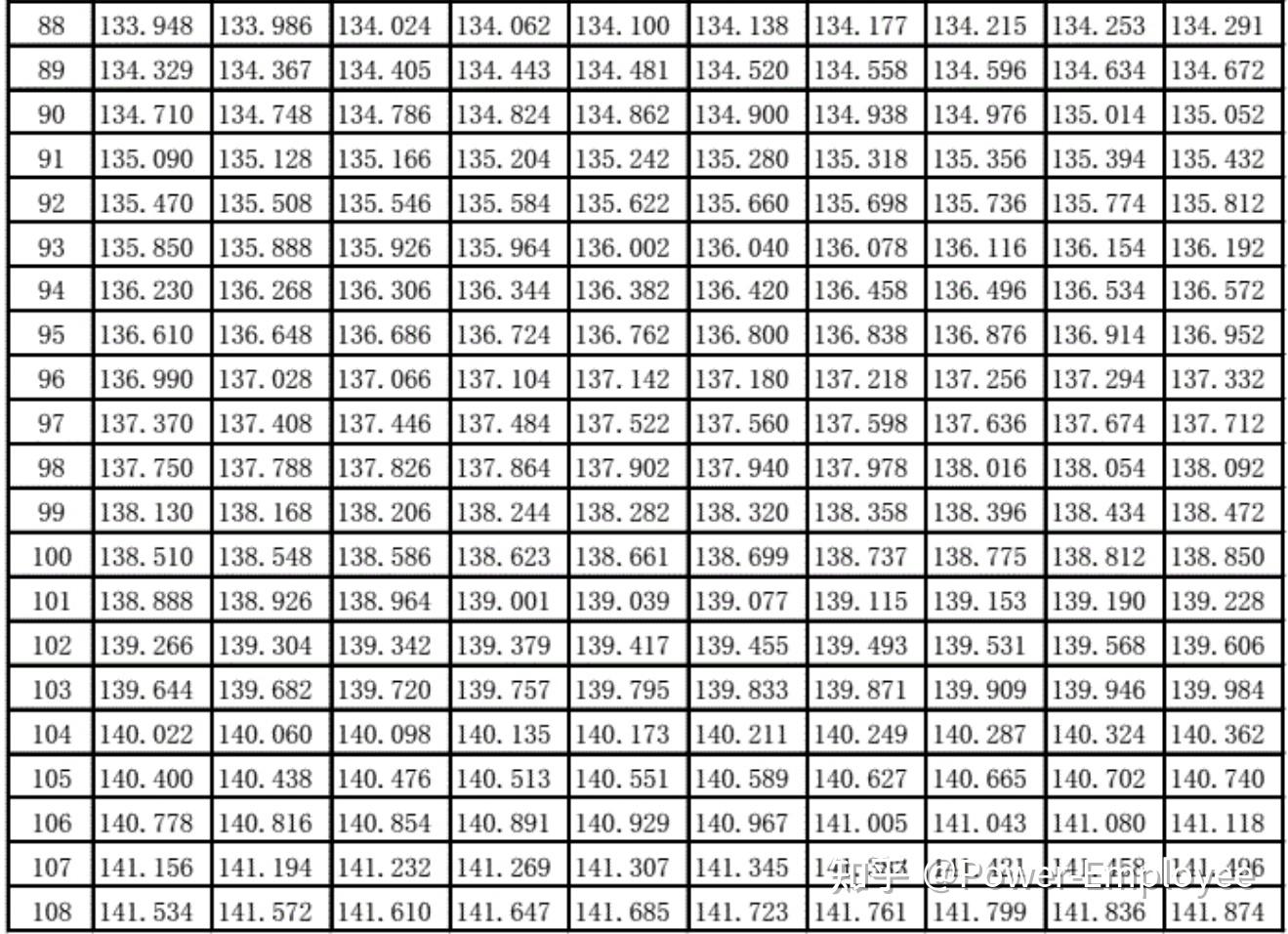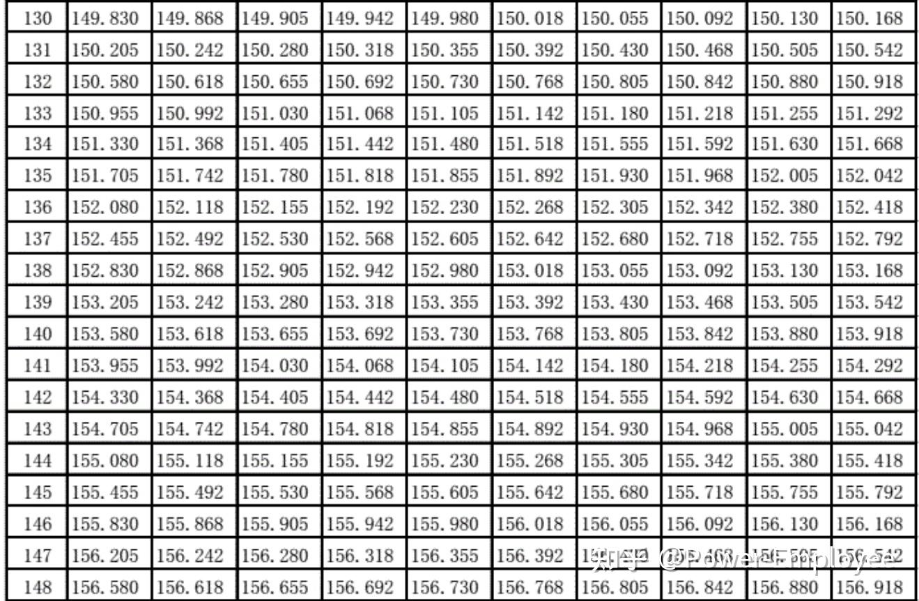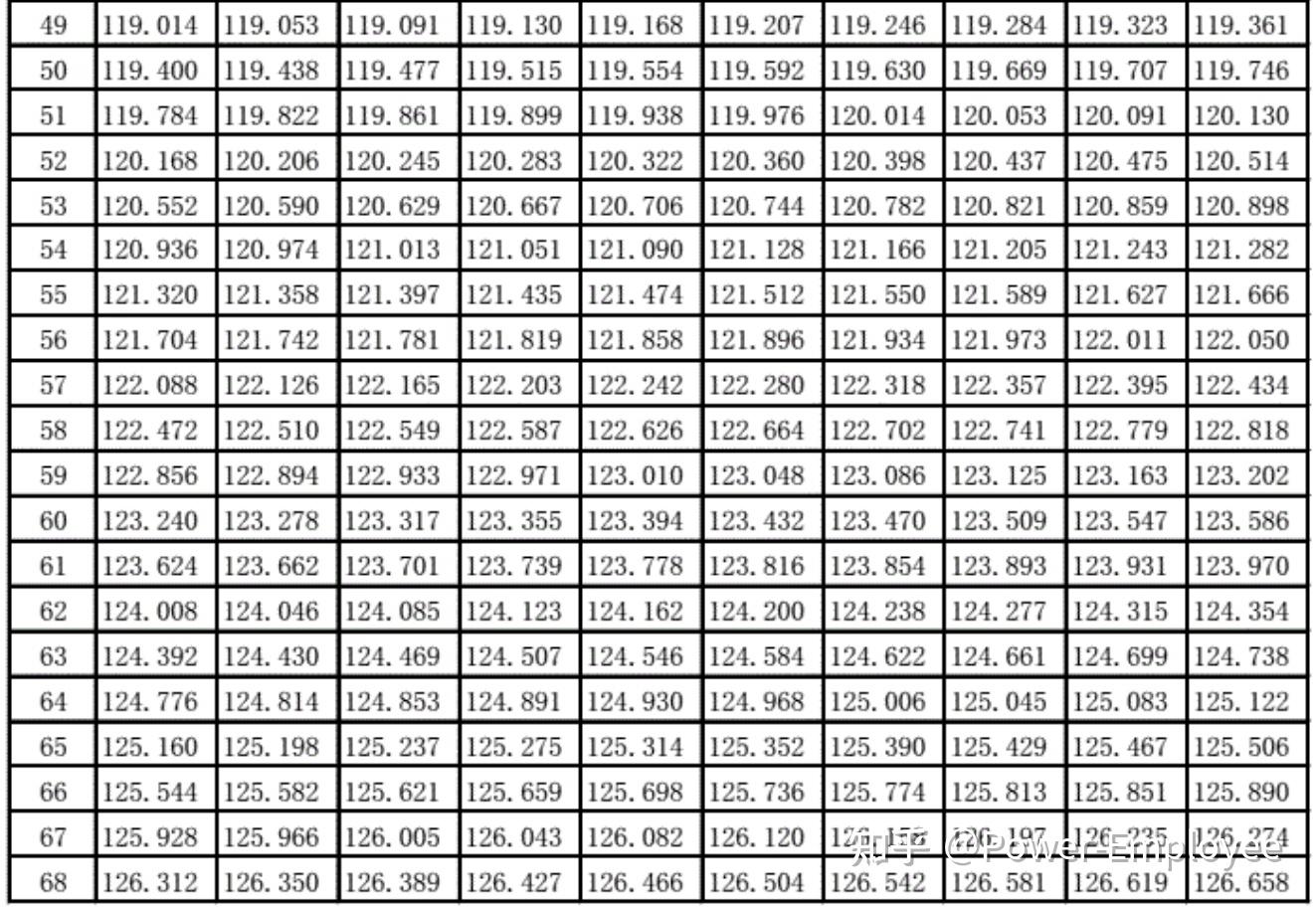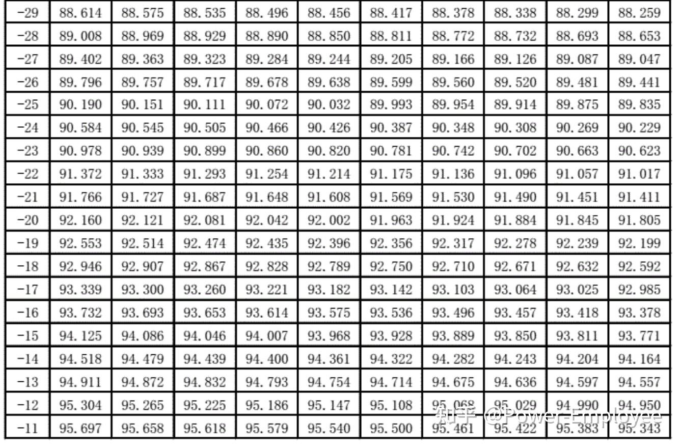 PT100如果知道了阻值,有2个办法可以知道此阻值下的温度。 一:通过计算得到阻值对应的温度,此方法过于复杂一般不推荐, 二:通过PT100的分度表查对应阻值即可知道温度。推荐的办法, PT100分度表如上图所示。