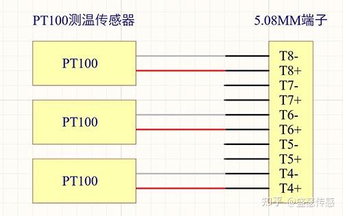 | 4路PT100采集模块也可采用2线制接线,但建议接3线,一般PT100传感器都是3线。