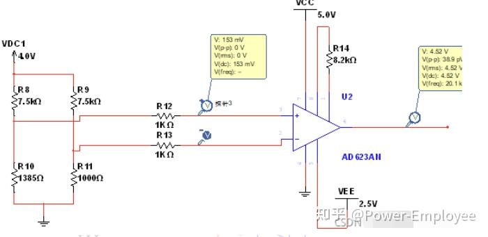 前半部分是4.096V恒压源电路,然后是一个桥式电压采样电路,后面是一个电压放大电路。
