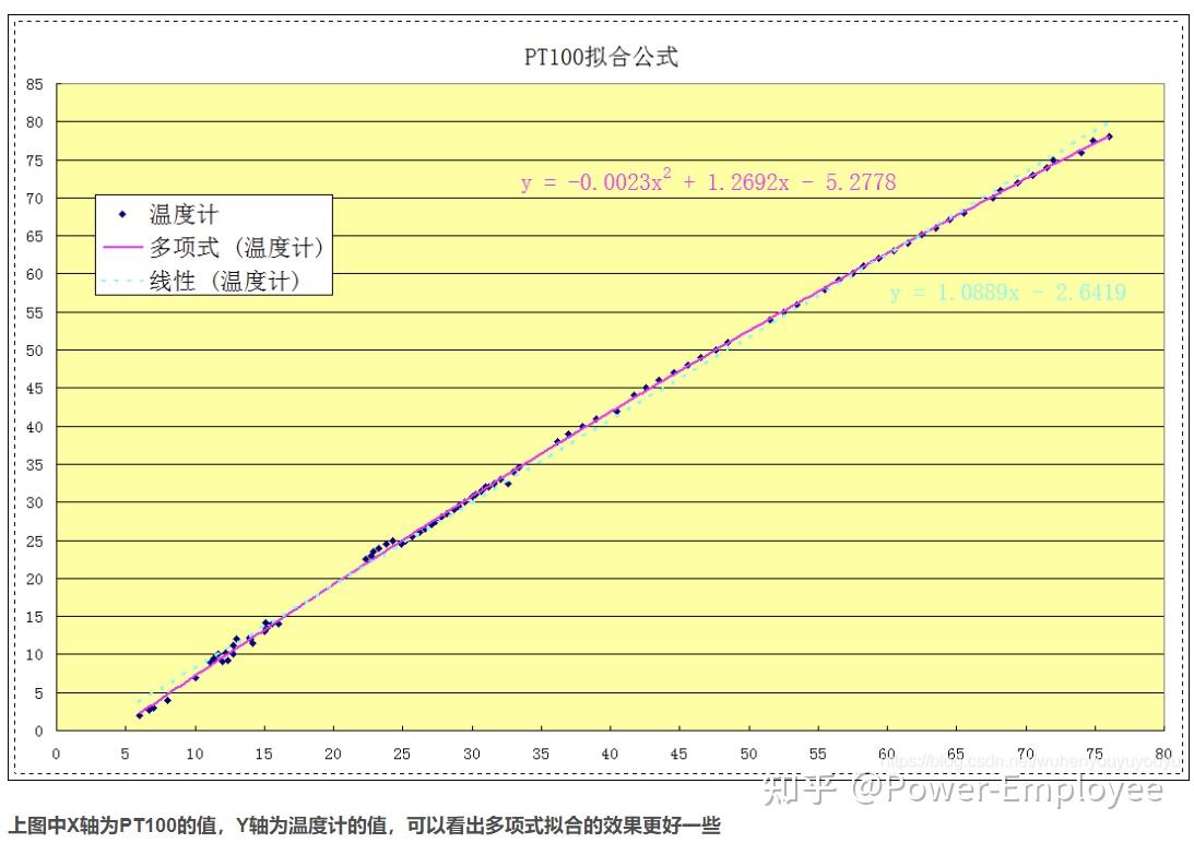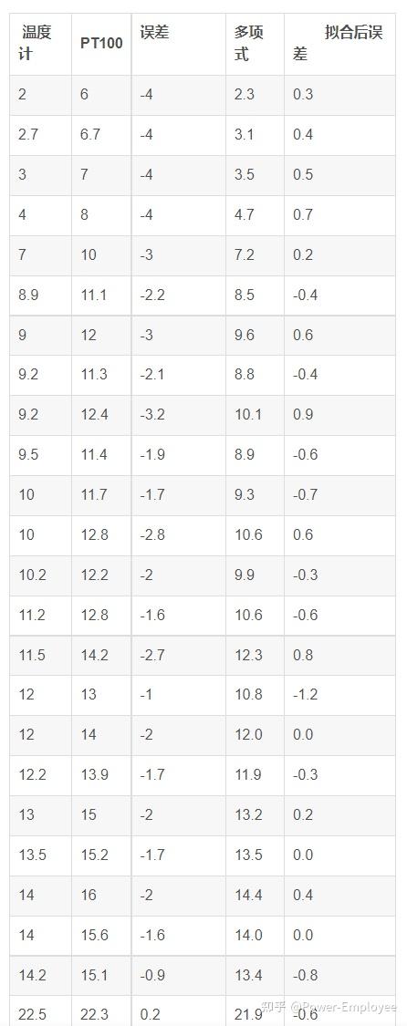 y: 为实际标准值,X为PT100的测量值(通过查表计算得到的)。