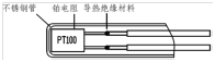 PT100铂电阻的阻值会随着温度变化,检测电阻即可知道温度,PT后的100表示在0摄氏度的阻值为100Ω。