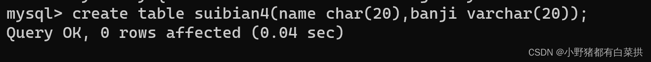 //create table suibian1:这部分指定了创建一个名为 “suibian1” 的新表格。