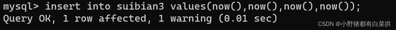 mysql> insert into suibian3 values(now(),now(),now(),now());